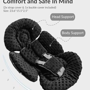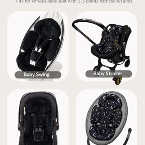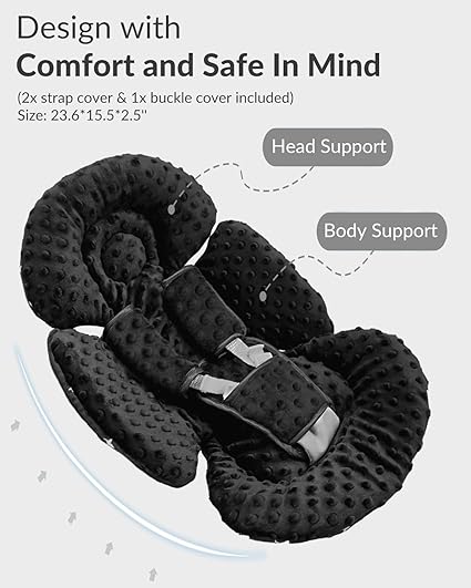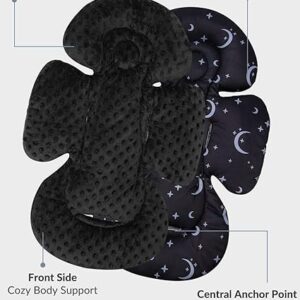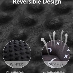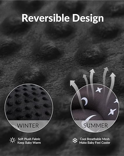 One side made of dot minky fabric featuring plush soft and other side made of mesh fabric featuring brathable and cool, making the infant insert suitable for all seasons.