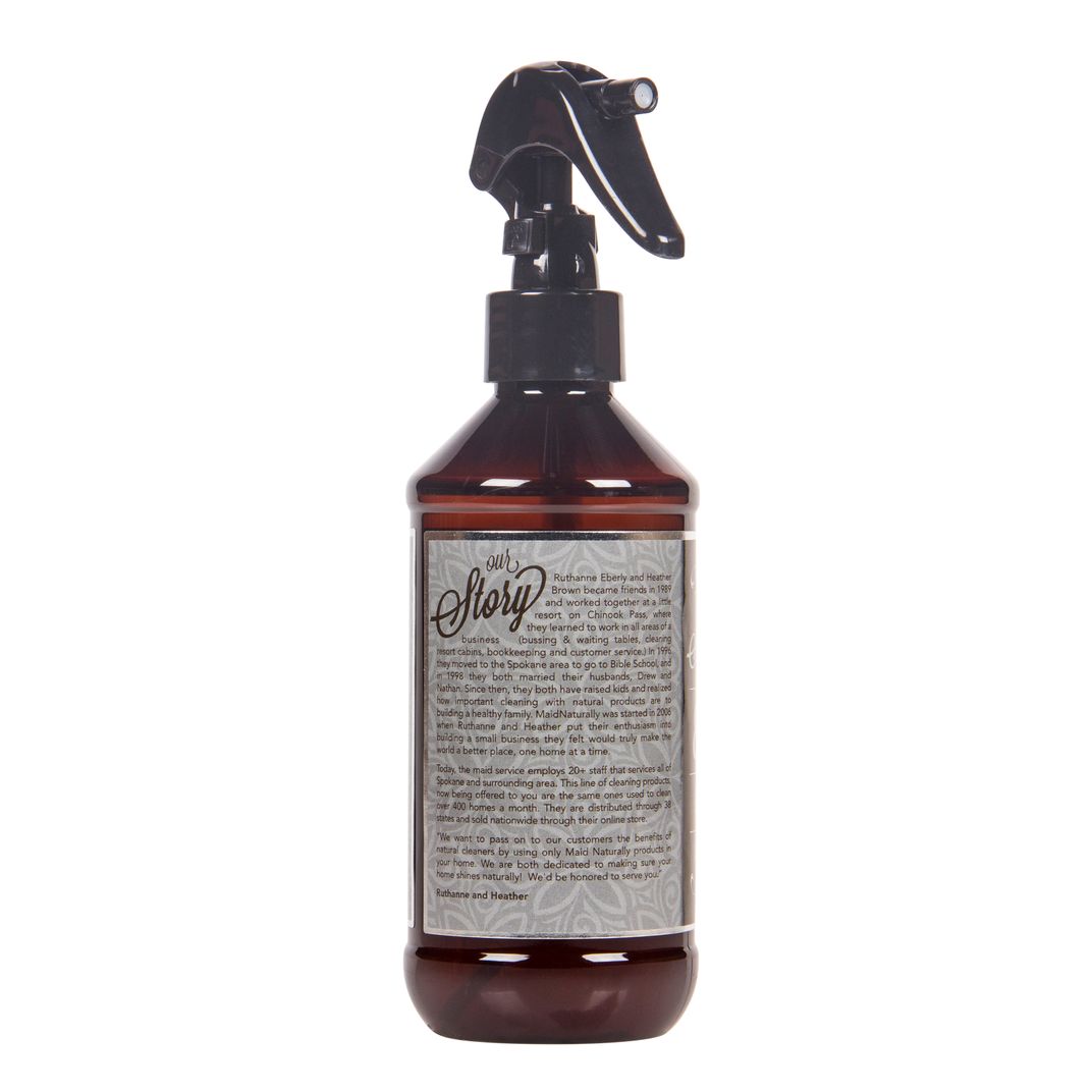 distilled water, white distilled vinegar, pure olive oil, emulsifier (made from olive oil), and pure essential oils.