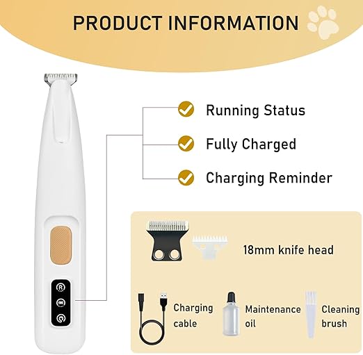 Professional dog clippers with precision paw hair trimmer for dogs, featuring LED smart display and waterproof low-noise operation. Specifically designed for localized trimming of sensitive areas (paws/face/tail), this universal dog hair trimmer combines intelligent pressure sensors with all-coat adaptability. The integrated dog paw hair trimmer attachment ensures safe, vibration-reduced grooming while maintaining clear visibility through its real-time battery/power monitor.
