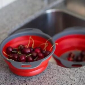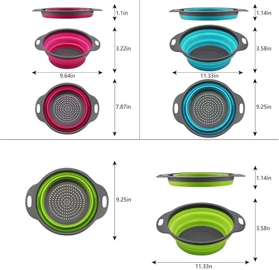 Suitable for all your kitchen needs; everything from pasta, fresh fruit and vegetables. The handles are made from extremely durable materials making it heat resistant up to 302°F. Dishwasher safe for easy cleaning. BPA free, so you can use it without any worries. Three strainers included in this package 2 pcs 12 inches (4 Quart) and 1 pcs 10 inches (2 Quart.) These colanders are the perfect solution to small kitchens and crowded cupboards, they are only 1.1 inch when folded.