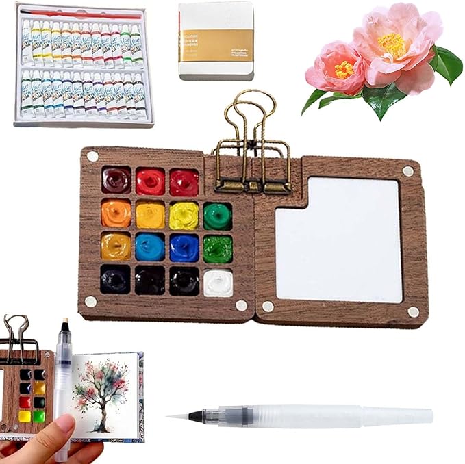 —High-Quality Materials – Walnut wood palette + premium brush.